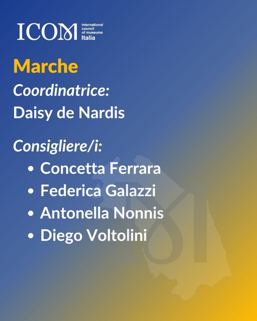 Guidati da Daisy De Nardis, i consiglieri, e con essi i soci, garantiranno che il programma del Coordinamento regionale Marche di ICOM risponda in modo puntuale alle esigenze concrete dei musei e dei professionisti delle diverse aree regionali, trasformando le specificità locali in una risorsa per l’intero sistema museale marchigiano.