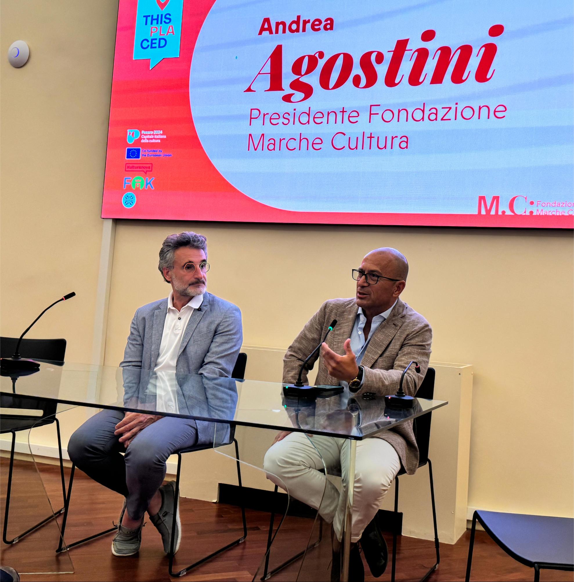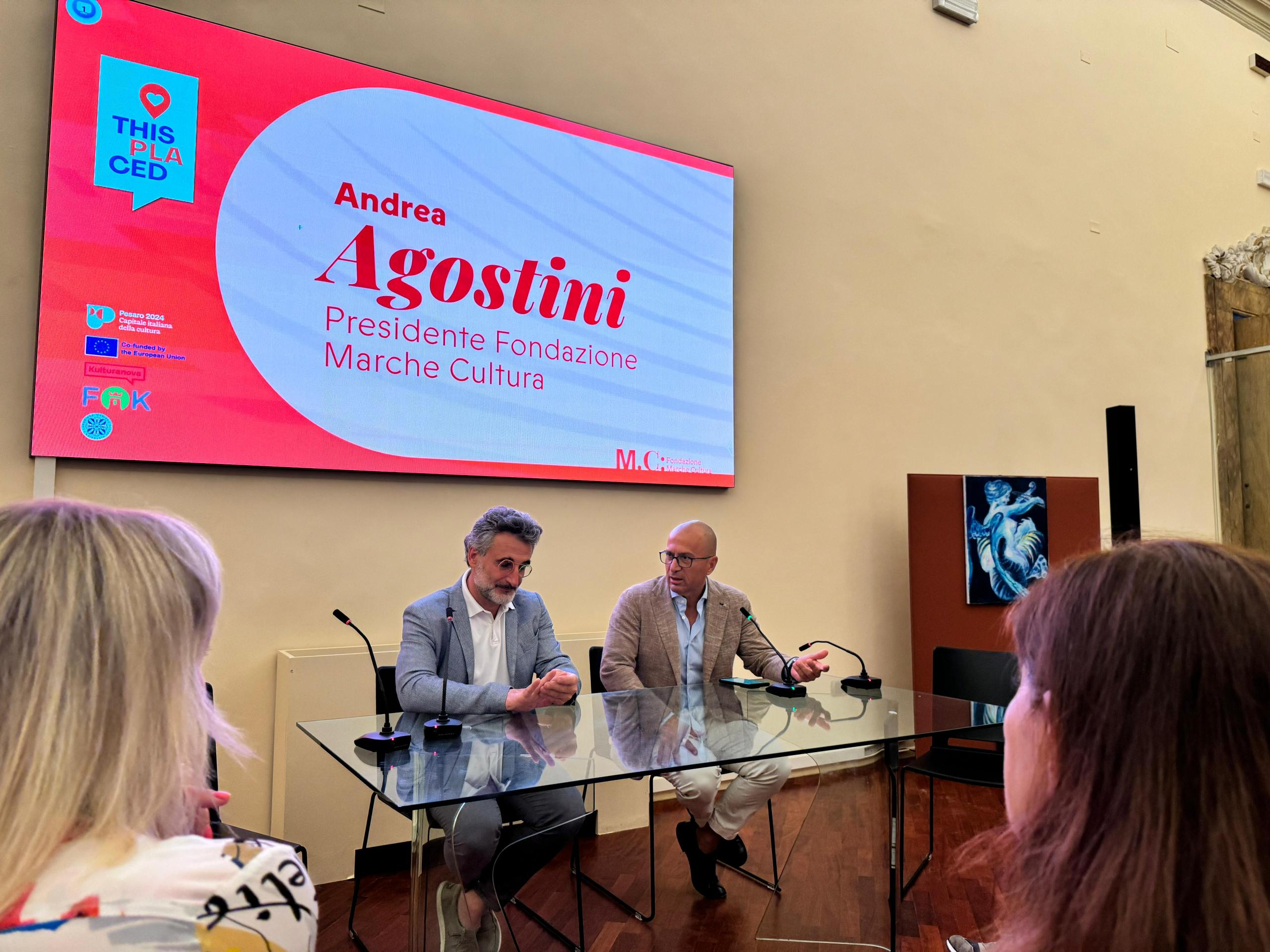 Presenti alla serata il presidente di Fondazione Marche Cultura Andrea Agostini e Silvano Straccini, direttore generale di Pesaro 2024 che hanno introdotto l’evento.