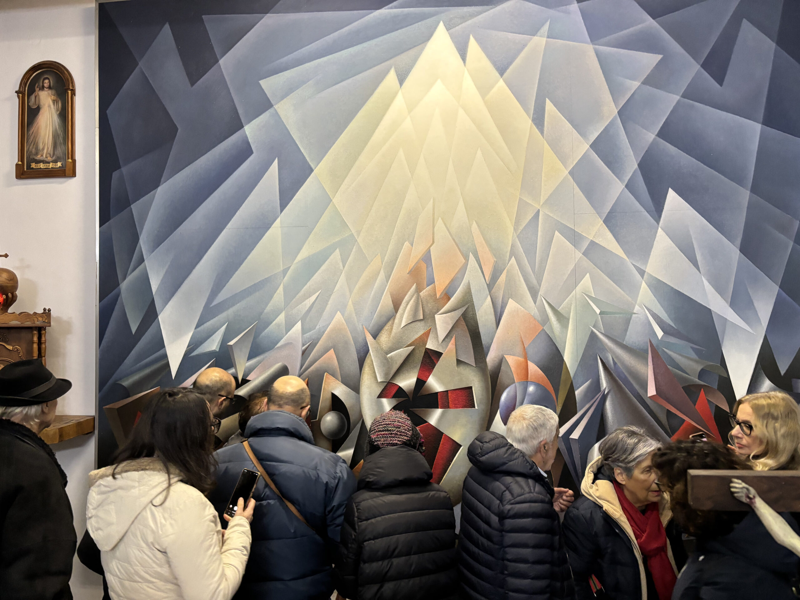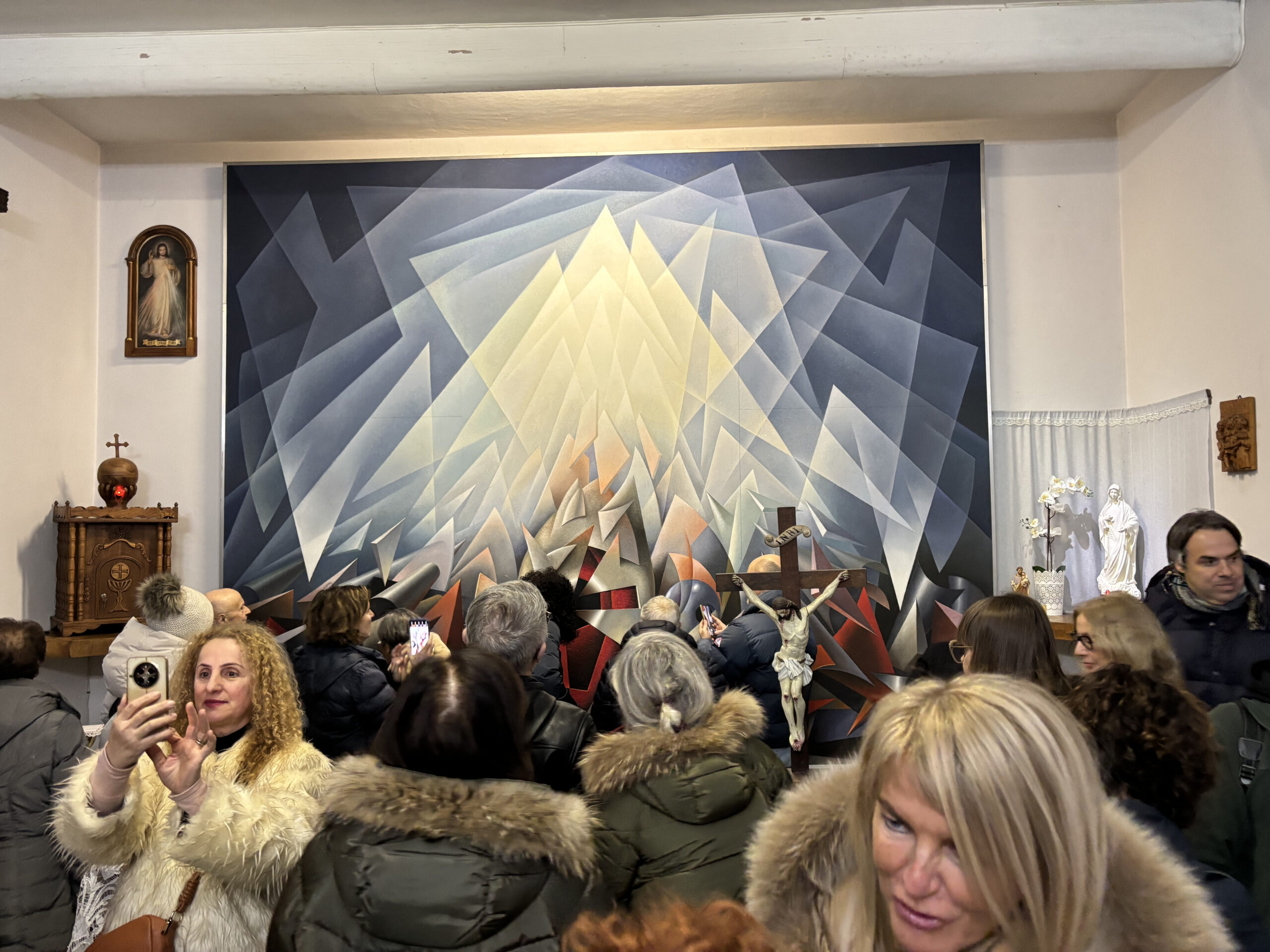 Alle ore 17:30 l’iniziativa proseguirà presso il convento francescano di Santa Maria della Pace, dove saranno eccezionalmente visibili opere collegate alla Rassegna Salvi custodite all’interno della struttura. Presente anche un’opera dell’artista protagonista dell’edizione di quest’anno, Bruno d’Arcevia con la sua “Tre Santi Francescani”, proseguendo con Alessandro Bruschetti futurista umbro che tra il 1979 e il 1980 realizzò due importanti opere: il monumentale Giudizio Universale, realizzato nella cappella interna e mai visibile al pubblico, insieme al Miracolo dell’acqua, opera collocata nella chiesa e terminata poi da Nello Palloni, altro artista presente al MAM’S- Galleria d’Arte Contemporanea di Sassoferrato insieme ad Arcevia e Bruschetti. Per l’occasione verrà esposto anche il raffinato bozzetto preparatorio a tempera di tale opera, presentato accanto all’opera futurista.