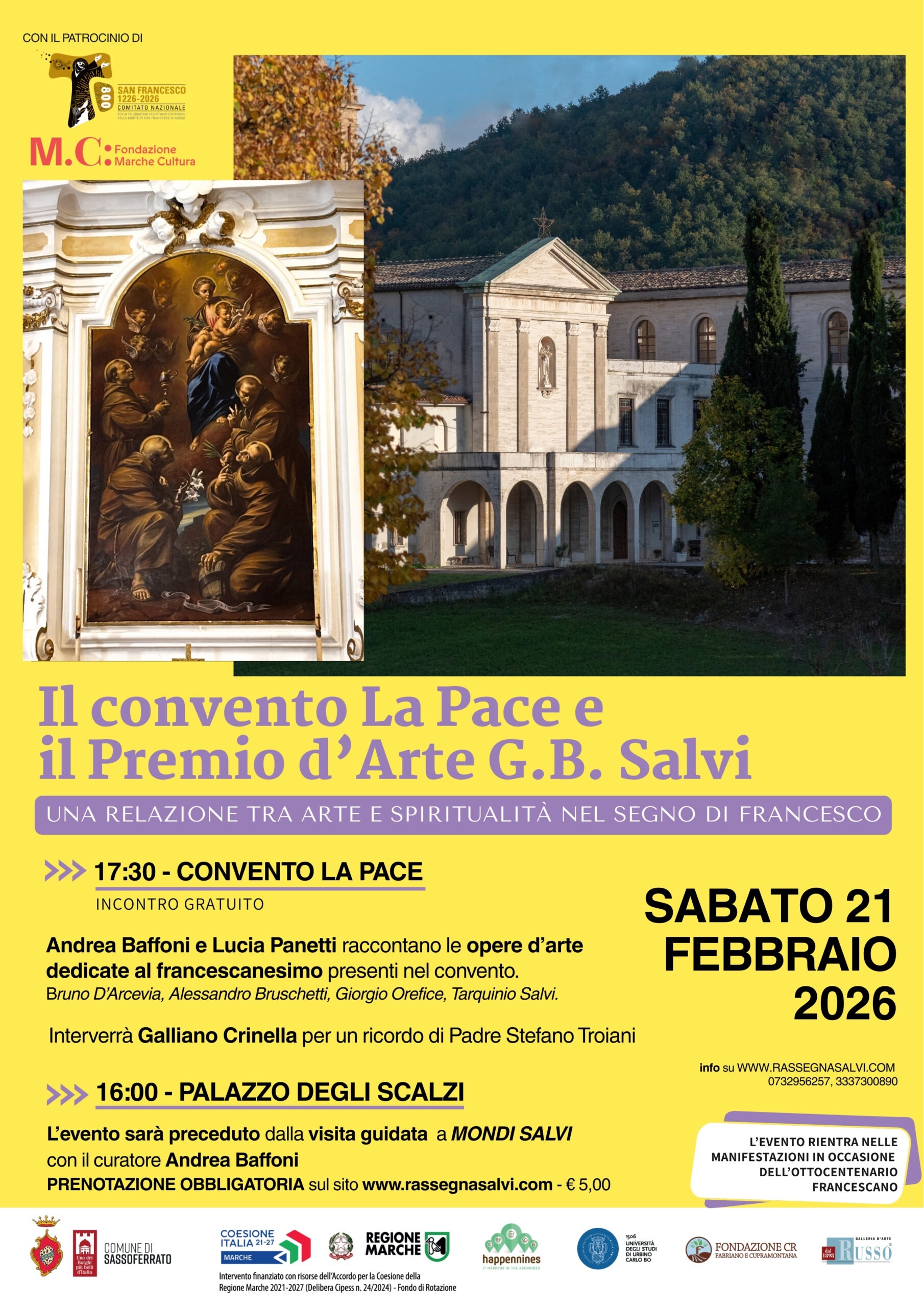 Il pomeriggio si propone come un momento di riflessione sul rapporto tra creazione artistica, memoria storica e dimensione spirituale, rinnovando nel segno francescano il legame identitario tra il convento della Pace, il Premio Salvi e la comunità di Sassoferrato.