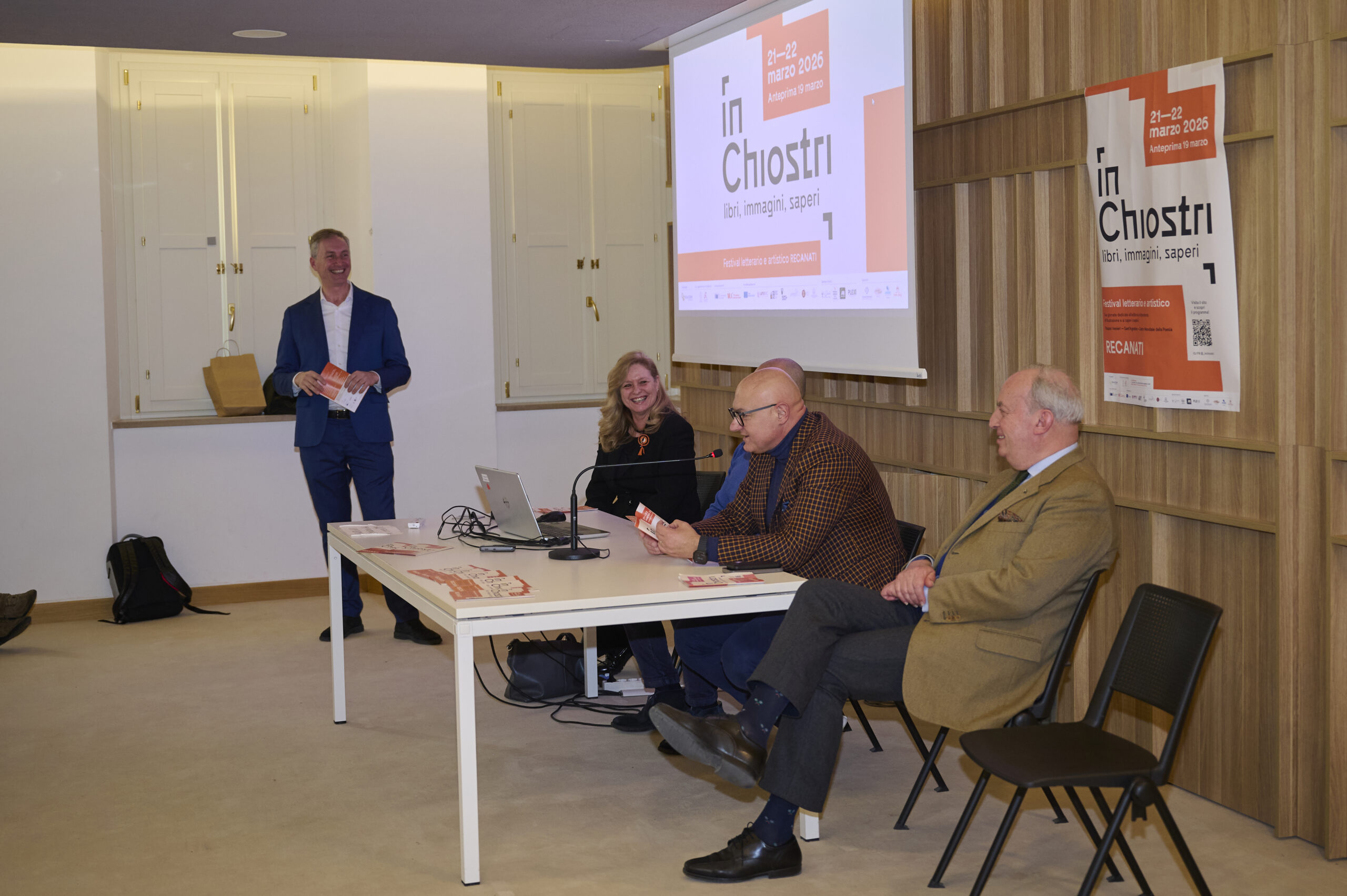 Recanati rappresenta un contesto particolarmente significativo per un progetto di questo tipo: una città profondamente legata alla parola scritta e al pensiero, con un centro storico ricco di architetture di grande valore, spesso poco vissute nella quotidianità. In questo modo i chiostri si trasformano in veri e propri dispositivi culturali attivi, capaci di far dialogare il patrimonio storico con la produzione culturale contemporanea.