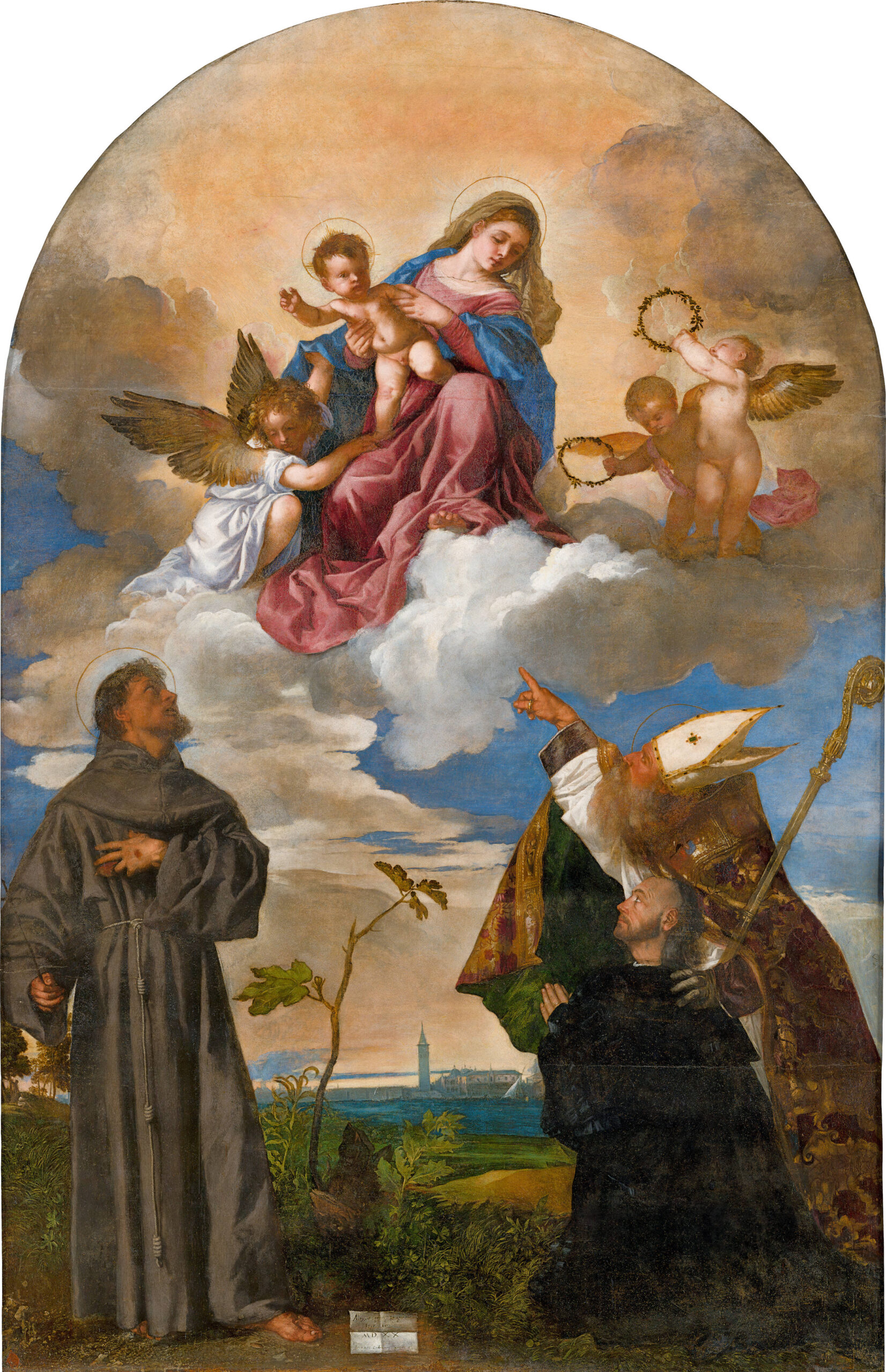 La Pinacoteca “Francesco Podesti” è considerata tra le più importanti in Italia per la straordinaria presenza di opere di pittura marchigiana, veneta e delle varie scuole italiane. Tra le collezioni, che vanno dal XV fino al XX secolo, spiccano la Pala Gozzi di Tiziano Vecellio, capolavoro rinascimentale del 1520, e, dello stesso Tiziano, la Crocifissione. A queste si affiancano opere di straordinaria importanza come la Circoncisione di Olivuccio Ciccarello, la Madonna con Bambinodi Carlo Crivelli, la Pala dell’Alabarda di Lorenzo Lotto, che testimonia il genio narrativo ed emotivo dell’artista, l’Immacolata del Guercino – una delle testimonianze più alte del Seicento italiano, dove la Vergine sembra emergere dal paesaggio marino che richiama il golfo di Ancona, quasi a suggellare il legame profondo tra la città e il suo mare – e la Madonna col Bambino e i santi Nicola di Bari, Francesco di Sales e Ambrogio di Carlo Maratti, realizzata nel 1672 per l’altare maggiore della chiesa di San Nicola in Ancona. A queste, si aggiungono importanti testimonianze della scuola anconetana, come le opere di Andrea Lilli, e i dipinti di grande fascino come la Negromante attribuita a Angelo Caroselli.